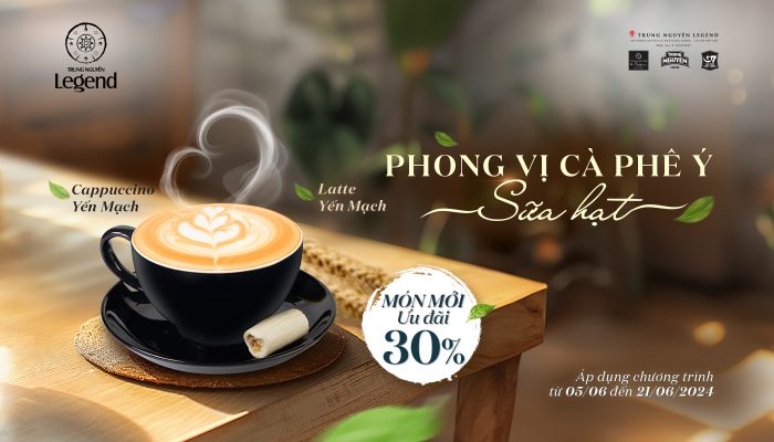 Đặc biệt, nhân dịp lần đầu tiên ra mắt, Trung Nguyên Legend dành tặng bạn ưu đãi 30% áp dụng với bộ đôi Cappuccino Yến Mạch, Latte Yến Mạch.