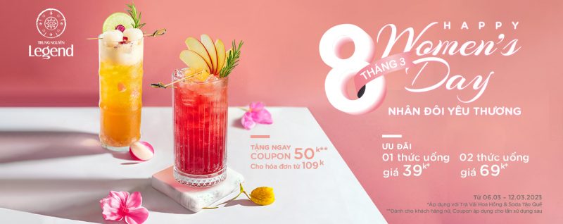 Ngày 8 Tháng 3 Nhân Đôi Yêu Thương cùng những ưu đãi Trung Nguyên Legend Café dành tặng bạn từ ngày 06/03/2023 đến hết ngày 12/03/2023.