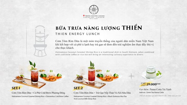 Chào đón năm mới Nhâm Dần, hãy cùng Thế Giới Cà Phê Trung Nguyên Legend bắt đầu một kế hoạch mới để có Thân – Tâm – Trí khỏe mạnh, sẵn sàng bứt phá mọi thử thách. Kể từ ngày 06/02/2022 (mùng 06 Tết), Thế Giới Cà Phê Trung Nguyên Legend xin gửi đến bạn các gợi ý lựa chọn bữa ăn để nạp năng lượng buổi trưa ngày xuân ấm áp!