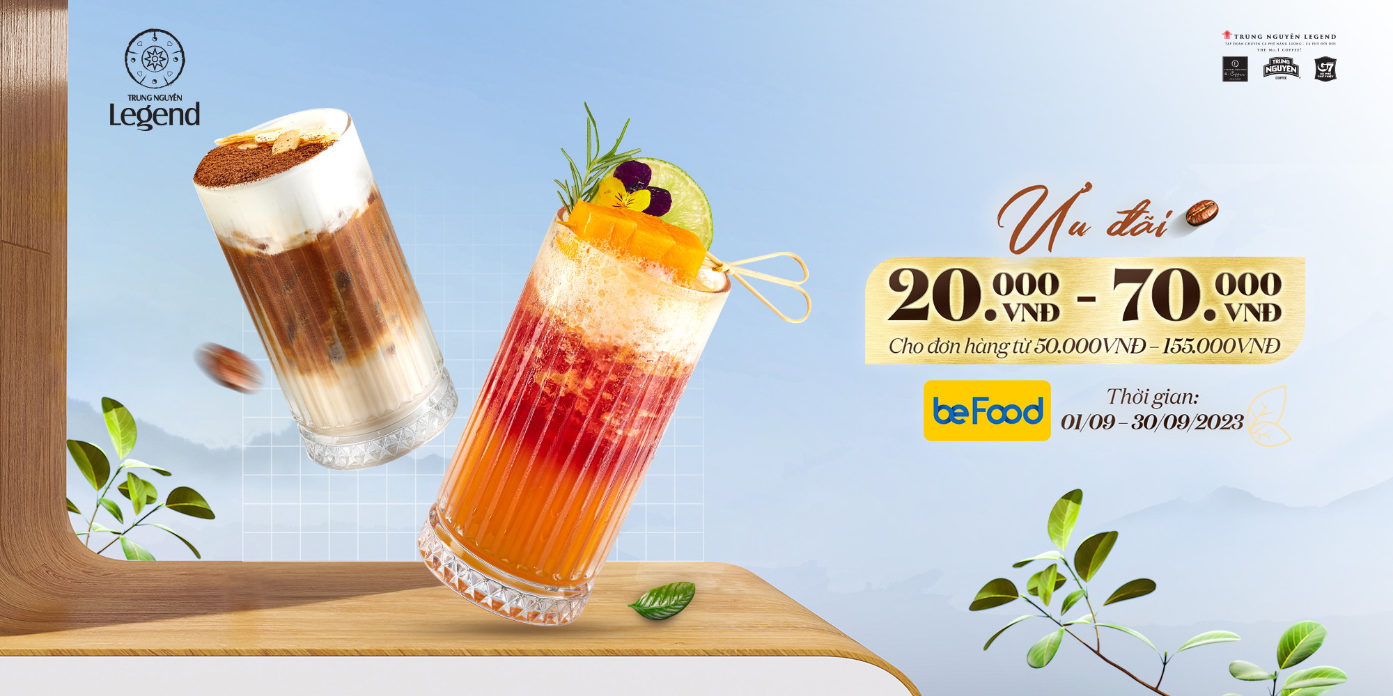 Đặc biệt, suốt trọn tháng 09 này, Trung Nguyên Legend dành tặng riêng đến bạn hàng chục nghìn mã ưu đãi hấp dẫn từ 20.000đ – 70.000đ cho tất cả đơn hàng từ 50.000đ – 169.000đ.