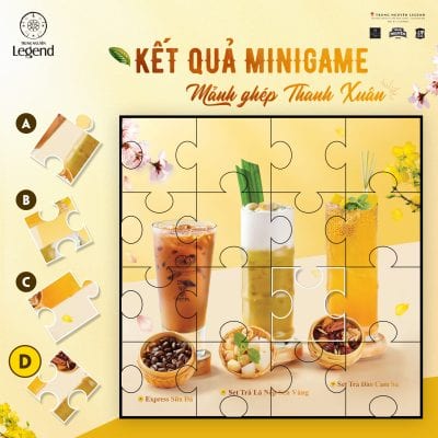 Cảm ơn các bạn đã cùng Trung Nguyên Legend thử tài với minigame “MẢNH GHÉP THANH XUÂN” với đáp án đúng là D.
