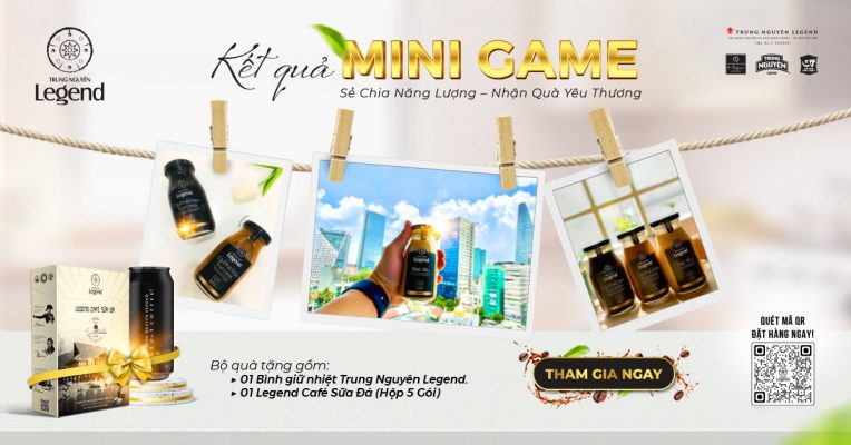 ? Chúng tôi rất vui được công bố danh sách 10 bạn có bài dự thi hợp lệ và có nhiều lượt bình chọn reactions (like, tim,…) nhất. Mỗi bạn sẽ nhận 01 combo quà tặng bao gồm: 01 Bình giữ nhiệt Trung Nguyên Legend (màu ngẫu nhiên) & 01 hộp Legend Café Sữa Đá loại 5 gói.