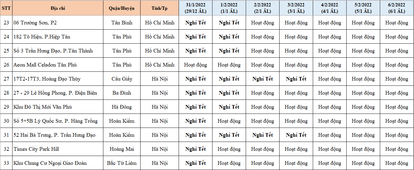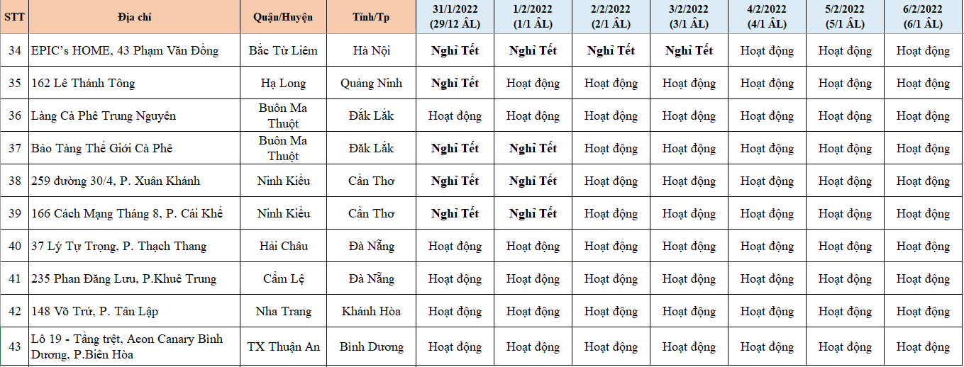 Lịch hoạt động các không gian Trung Nguyên Legend trong dịp tết Nhâm Dần