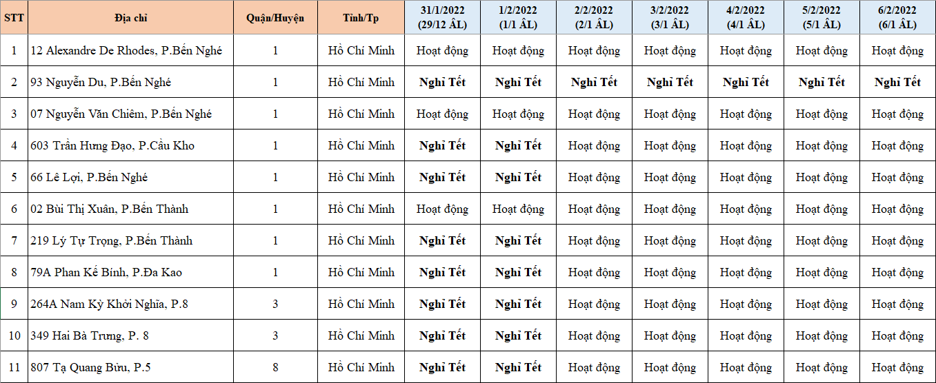 Lịch hoạt động các không gian Trung Nguyên Legend trong dịp tết Nhâm Dần