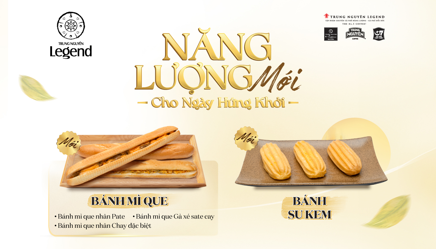 Nhằm mang đến trải nghiệm phong phú hơn cho khách hàng và thêm nhiều lựa chọn tiện lợi, không gian Trung Nguyên Legend Cafe đã ra mắt thêm món mới: Bánh Mì Que và Bánh Su Kem. Bộ đôi này là sự bổ sung hoàn hảo cho thực đơn, đặc biệt phù hợp với những ai cần một bữa sáng nhanh gọn, đủ đầy năng lượng hay một bữa xế nhẹ nhàng để tiếp sức cho buổi chiều.