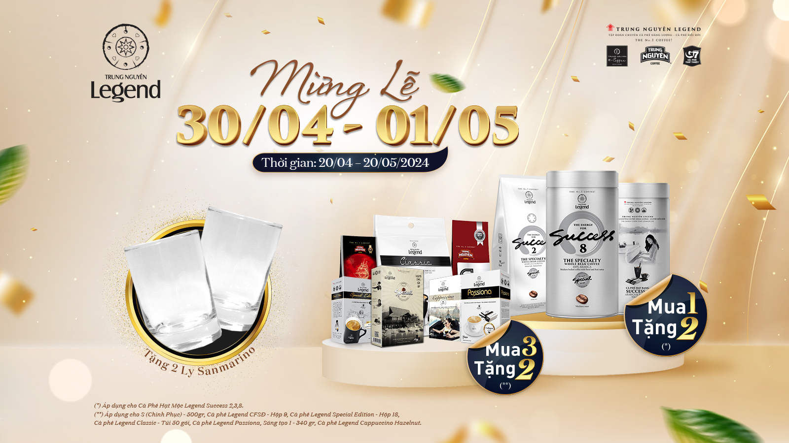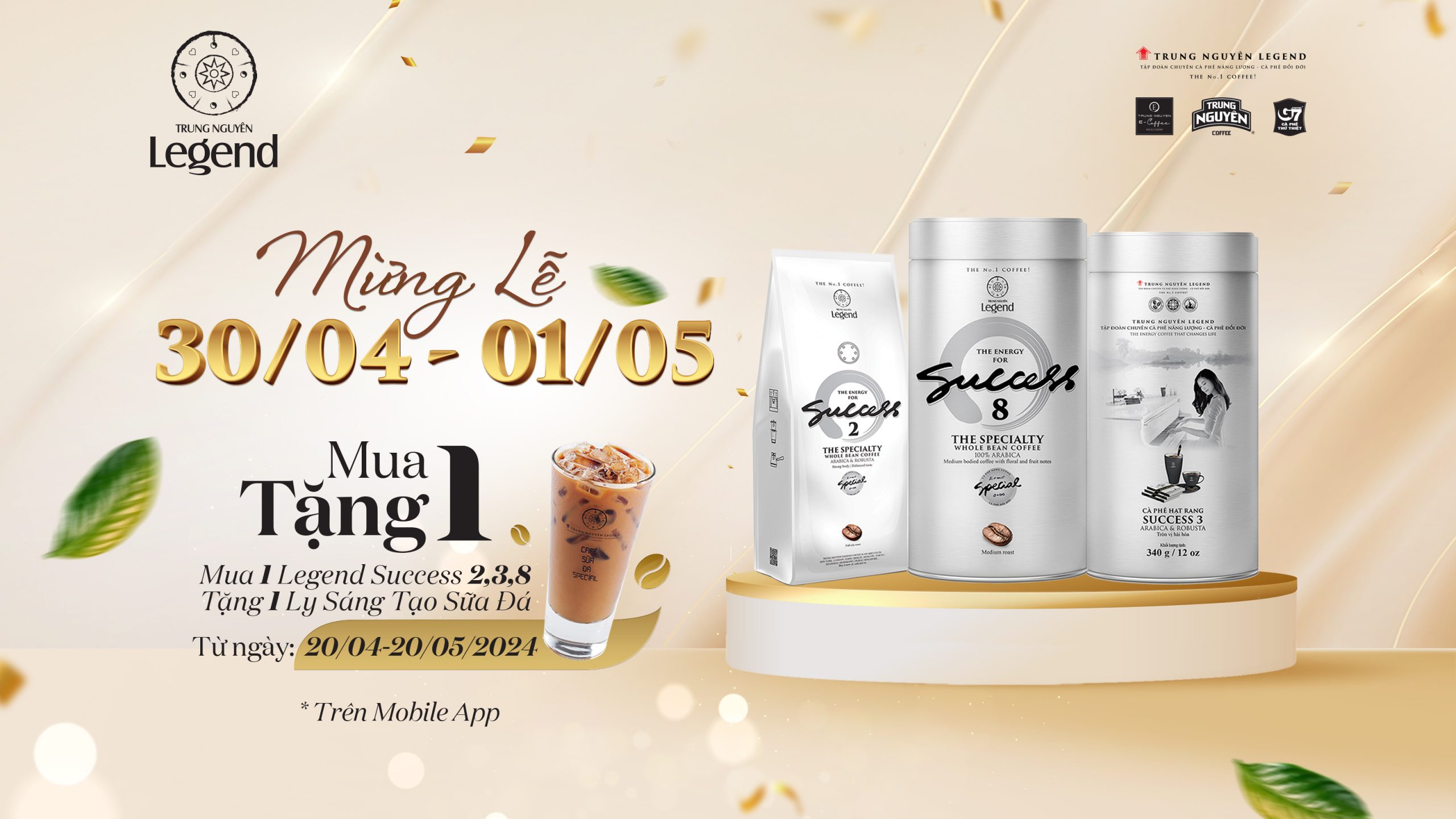 - Áp dụng khi mua 01 sản phẩm Cà Phê Legend Success 2/3/8 tại Website trungnguyenlegendcafe.net.