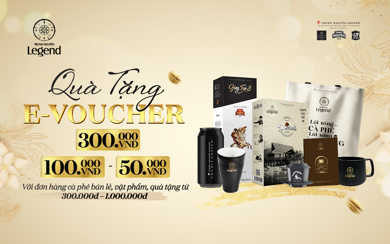 Để chào đón mùa Giáng Sinh năm nay, ngoài việc cho ra mắt Bộ 3 Sản Phẩm Quà Tặng xinh xắn cùng mức giá ưu đãi hấp dẫn, từ nay đến 31/01/2024, Trung Nguyên Legend còn áp dụng chương trình đặc biệt – Tặng E-Voucher ưu đãi F&B lên đến 300.000Đ khi mua sắm các sản phẩm retail, vật phẩm, quà tặng trực tiếp tại các không gian Trung Nguyên Legend toàn quốc.