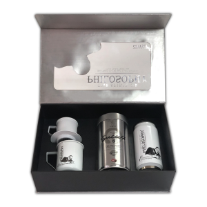 Quy cách: Bộ gồm có 1 Lon Cà phê hạt rang SUCCESS 8 – 340 g, 1 Phin (màu trắng), 1 Ca (màu trắng), 1 Bình giữ nhiệt, 1 Muỗng khuấy, 1 Hộp giấy, 1 Túi vải