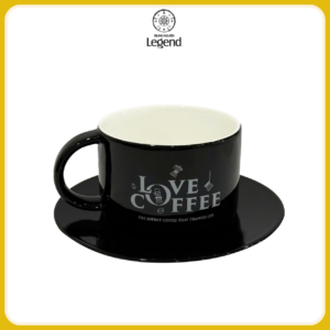 Thiết kế tối giản nhưng hiện đại, bộ tách gây ấn tượng với sắc đen huyền bí phối cùng lòng tách trắng, tạo nên sự tương phản mạnh mẽ và sang trọng. Mặt trước in logo Trung Nguyên Legend – biểu tượng của thương hiệu cà phê Việt Nam vươn tầm thế giới. Mặt sau khắc họa thông điệp truyền cảm hứng “Love Coffee – The Energy Coffee That Changes Life”, khơi dậy năng lượng tích cực mỗi ngày.