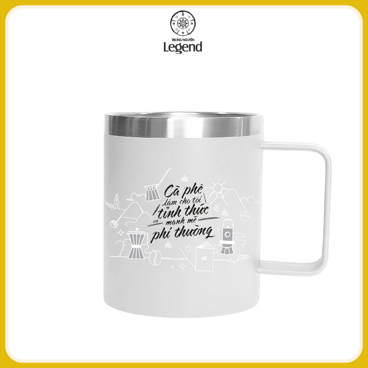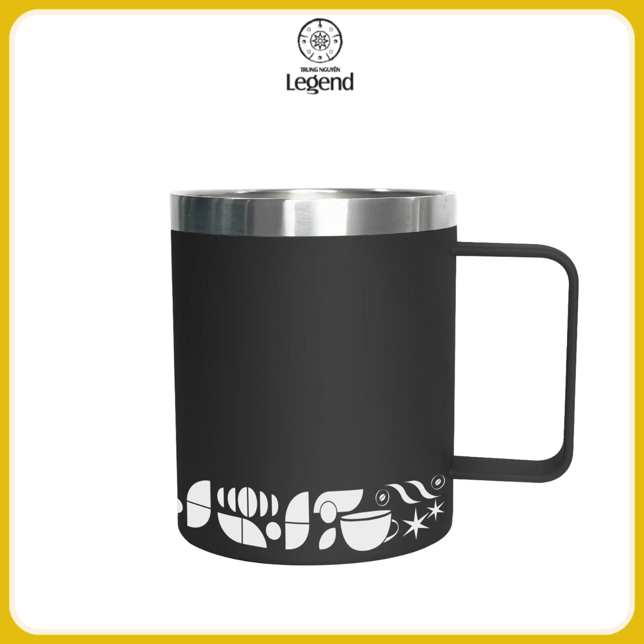 Bề mặt ly là sự kết hợp hài hòa giữa thẩm mỹ và tinh thần thương hiệu. Logo Trung Nguyên Legend cùng họa tiết tỉnh thức được thể hiện tinh giản, hiện đại nhưng sâu lắng – đại diện cho vẻ đẹp của những giá trị được chắt lọc dành cho người biết thưởng thức.