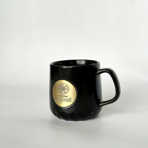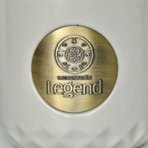 Chi tiết logo kim loại gắn trước ly giúp nhận diện thương hiệu Trung Nguyên rõ nét, đồng thời tạo điểm nhấn sang trọng cho sản phẩm.