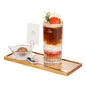 Thành phần nguyên liệu: Cà phê Espresso Buôn Ma Thuột | Soda | Syrup vải | Nước đường | Chanh tươi | Dâu tươi | Đá viên.