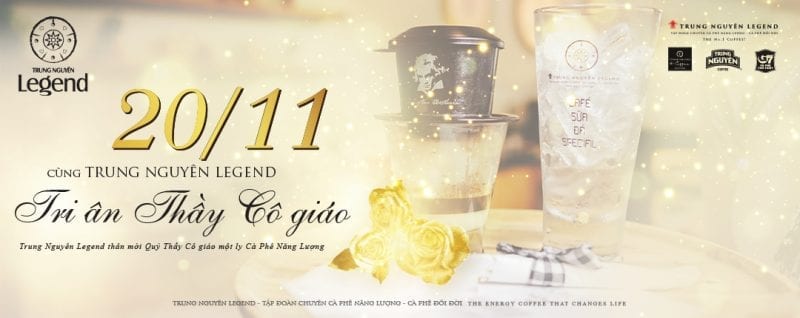 [20/11/2020] Nhân ngày Nhà Giáo Việt Nam 20/11, Trung Nguyên Legend trân trọng gửi tặng đến tất cả Quý Thầy Cô giáo những ly Cà Phê Năng Lượng tuyệt ngon – thay cho lời tri ân sâu sắc tấm lòng tận tụy, tràn đầy yêu thương của những Người Thầy luôn vì đàn em thân yêu.