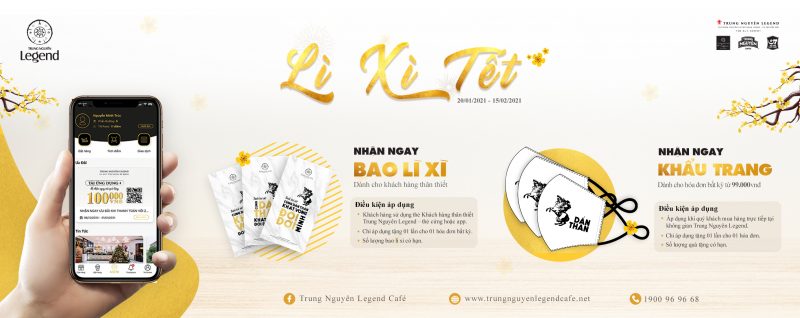 – Trung Nguyên Legend gửi tặng bạn bộ bao lì xì Tết 2021 khi sử dụng thẻ khách hàng thân thiết hoặc app Trung Nguyên Legend.
