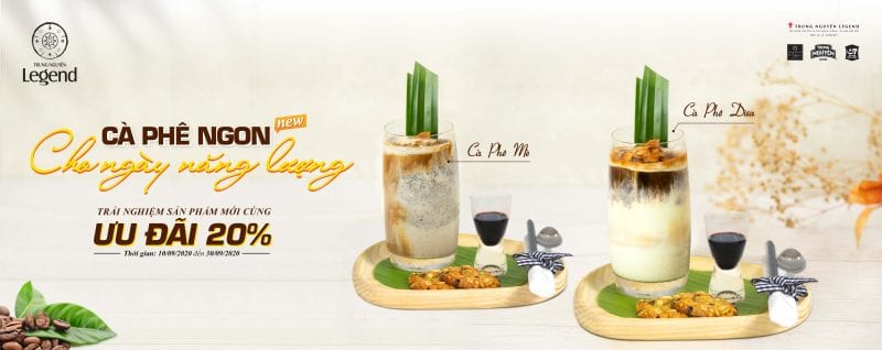 Đặc biệt, từ ngày 10/9 – 30/9, Trung Nguyên Legend Café dành tặng bạn ƯU ĐÃI ĐẶC BIỆT 20% khi order 2 thức uống mới tại các không gian Trung Nguyên Legend Café.