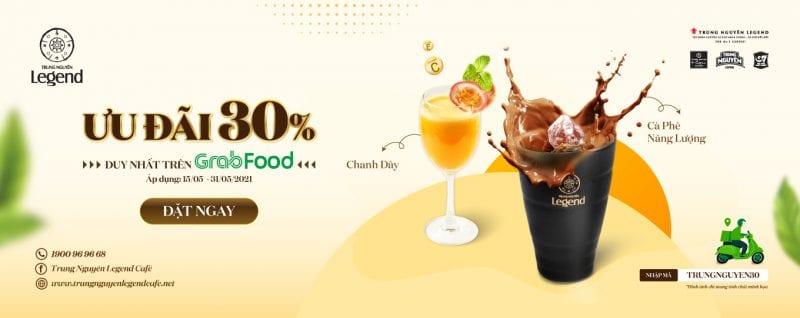 Trung Nguyên Legend Café tặng bạn ưu đãi ??% toàn menu khi order Cà phê Năng lượng trên app GrabFood đến hết ngày ?1/?5/????.