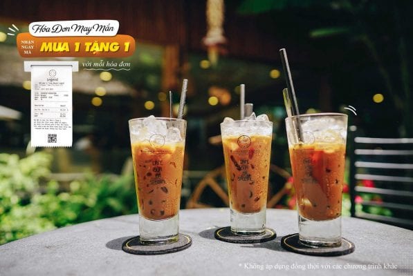 Khi bạn đến trải nghiệm các không gian Trung Nguyên Legend tại Hà Nội sẽ nhận được những phần quà Voucher Mua 1 Tặng 1, ưu đãi đồng giá 29,000đ để cùng gia đình, bạn thân thưởng thức những thức uống năng lượng tuyệt hảo.