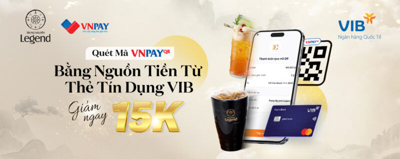 Thưởng thức ly cà phê yêu thích tại Trung Nguyên Legend Cafe nay tiện lợi hơn – tiết kiệm hơn khi thanh toán qua VNPAY-QR bằng nguồn tiền thẻ tín dụng VIB trên ứng dụng MyVIB.