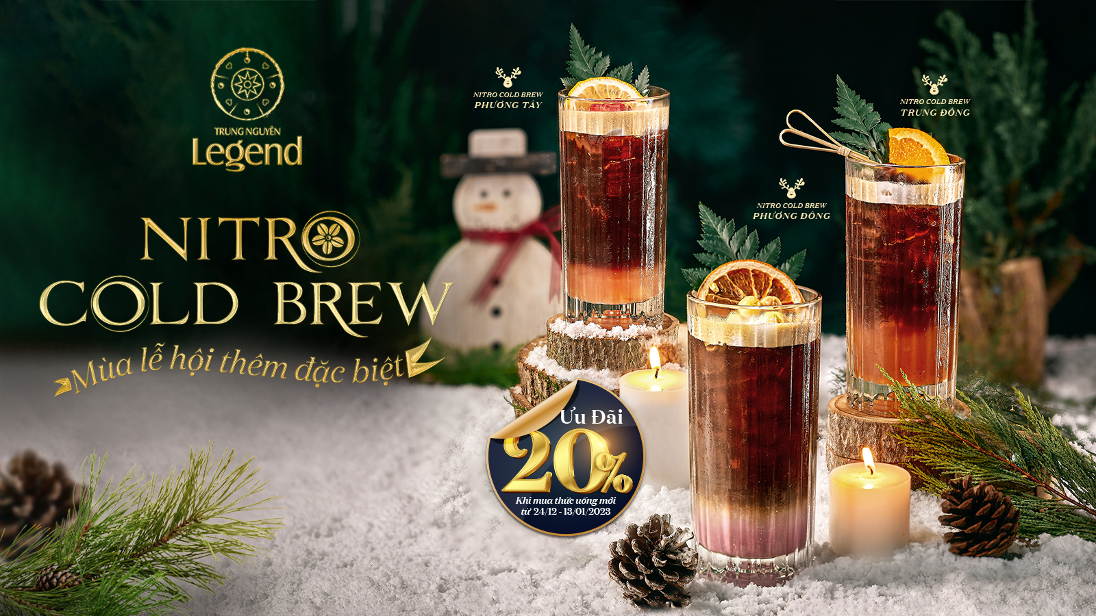 Chào đón Mùa lễ hội, Trung Nguyên Legend Café tặng bạn Ưu đãi 20% khi mua thức uống Cà Phê Nitro Cold Brew mới từ ngày 24/12/2022 đến hết ngày 13/01/2023.
